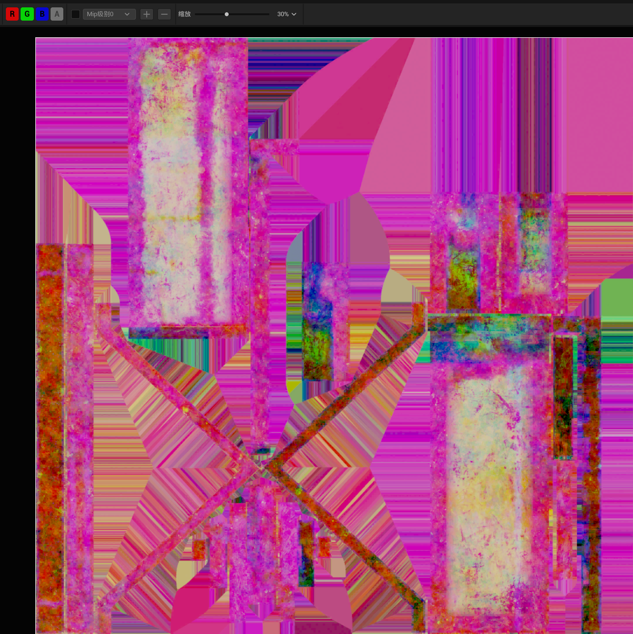 若单通道的mask贴图提供的脏迹效果不佳,可能需要提供三张mask贴图,分别放进RGB通道,得到三通道的mask贴图,如下: